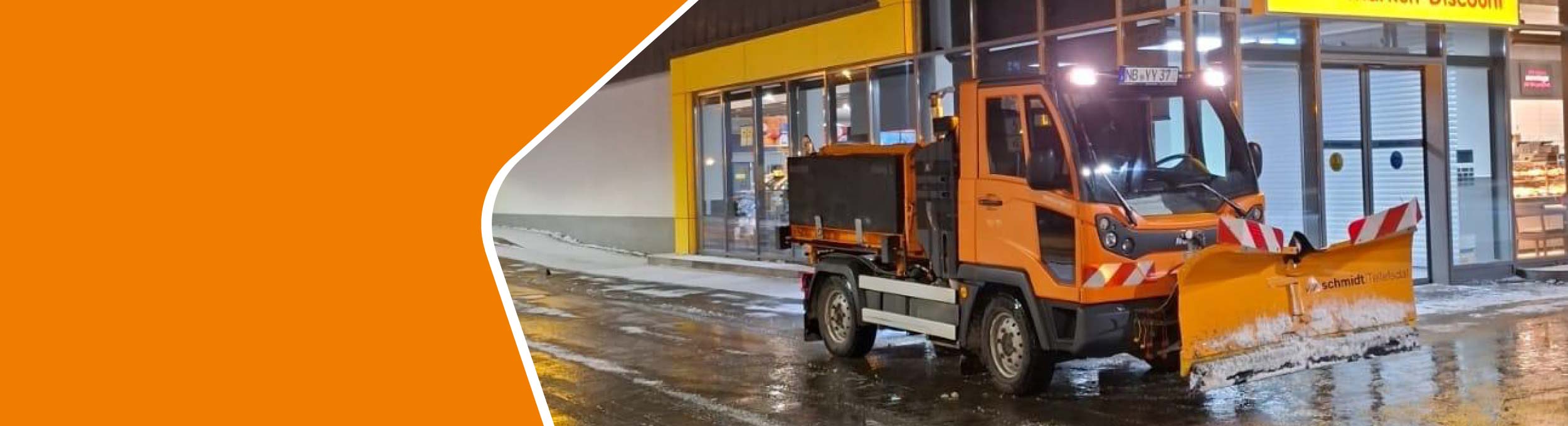 Weiterhin übernehmen wir zuverlässig und mit einem leistungsstarken Fuhrpark die Verkehrssicherung für Straßen, öffentliche und private Flächen – mit unserem Winterdienst und unserer Straßenreinigung.